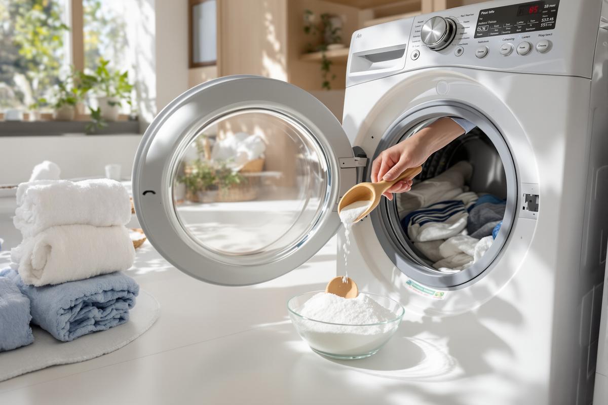 L’eau froide peut laver correctement à condition de l’accompagner des bons ingrédients. En ajoutant du bicarbonate de soude, vous boostez l’efficacité de votre lessive en douceur, sans produits agressifs. Vos vêtements ressortent plus propres, plus frais, et comme neufs.